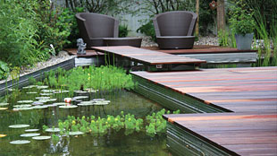 You can use an old hot tub to create the perfect backyard pond.