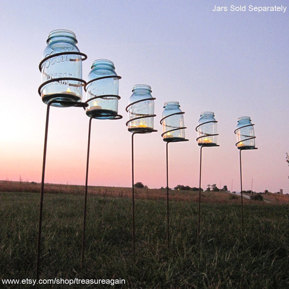 Step aside tikki torches! These fantastic garden stake Mason Jar candle holders will add a touch of hipster whimsy to your outdoor events. These candle holders come in orders of six and are designed to hold quart-size Mason Jars. Perfect for lining a path or lighting your garden, these candle holders are handmade by Treasure Again; an innovative Etsy store. You can order your candle holders or check out a plethora of great Mason Jar lighting at Treasure Again here.