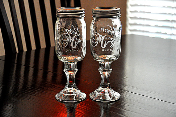 Redneck chic at its best; these Mason Jar wine glasses are the handy work of the very creative Rhonda. Perfect for a wedding toast, these puppies come replete with sealing caps to keep those pesky fruit flies out of your go-go juice. Order your personalized Mason Jar wine glasses from Rhonda’s Etsy shop TipsyGLOWs.