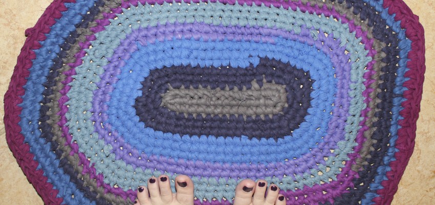 Ironing plastic bags together and then cutting them into strips will provide really great upcycled ‘yarn’ for a crochet bath mat. Just take care when fusing plastic bags together as they release toxic gases when heated. Do this step outside or in a very well ventilated room. Or you can use the same pattern, but cut T-shirts into strips instead.