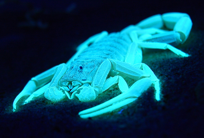 Actually, these scorpions are florescent rather than bio luminescent. This means that they glow under an ultra violet light rather than producing their own light. Still, we thought they were kinda cool in a creepy sort of way.