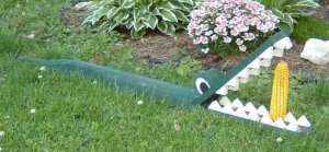 This cedar alligator provides a tasty treat to the squirrel that is unlikely to recognize the impending danger. This may be a cruel trick to play on squirrels that live in alligator country.