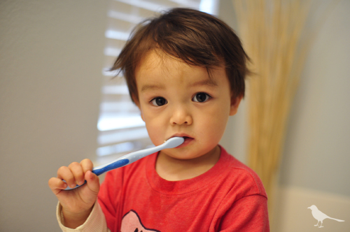 If you only have course sea salt, grind it in a mortar and pestle or a coffee grinder. Mix the dry ingredients and give it your natural toothpaste a taste. Feel free to add more peppermint or spearmint if it needs a little zing. Now add one teaspoon of coconut oil at a time until you have a paste that your little champ can scoop up onto their toothbrush. Keep your natural homemade toothpaste in a cool place, or the coconut oil will liquefy making it hard to keep on the toothbrush!