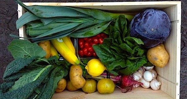 Farm shares or CSAs (community supported agriculture) are organizations that provide boxes of fresh fruit and veggies for weekly pickup. The boxes are made up of fresh farm produce grown by a farmer near you. Farm shares differ from one farmer to the next, but they are generally quite happy to cater to your likes and dislikes. Boxes range run from $20-$40 depending on the size of your family.